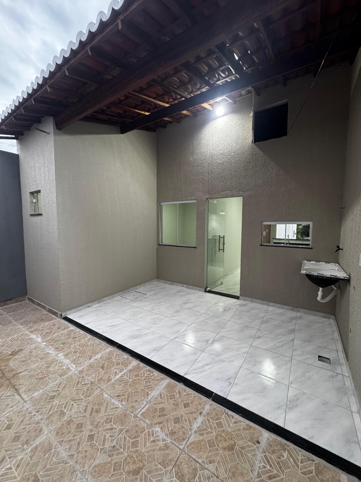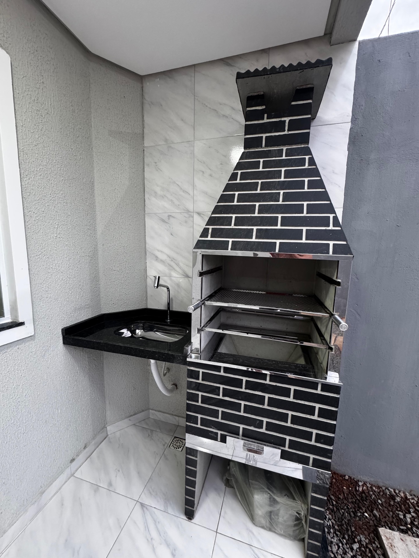 ✅ are gourmet externa contendo pia ( verde Ubatuba ) e churrasqueira ( pré moldada )