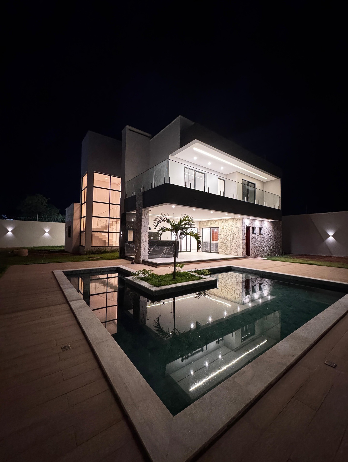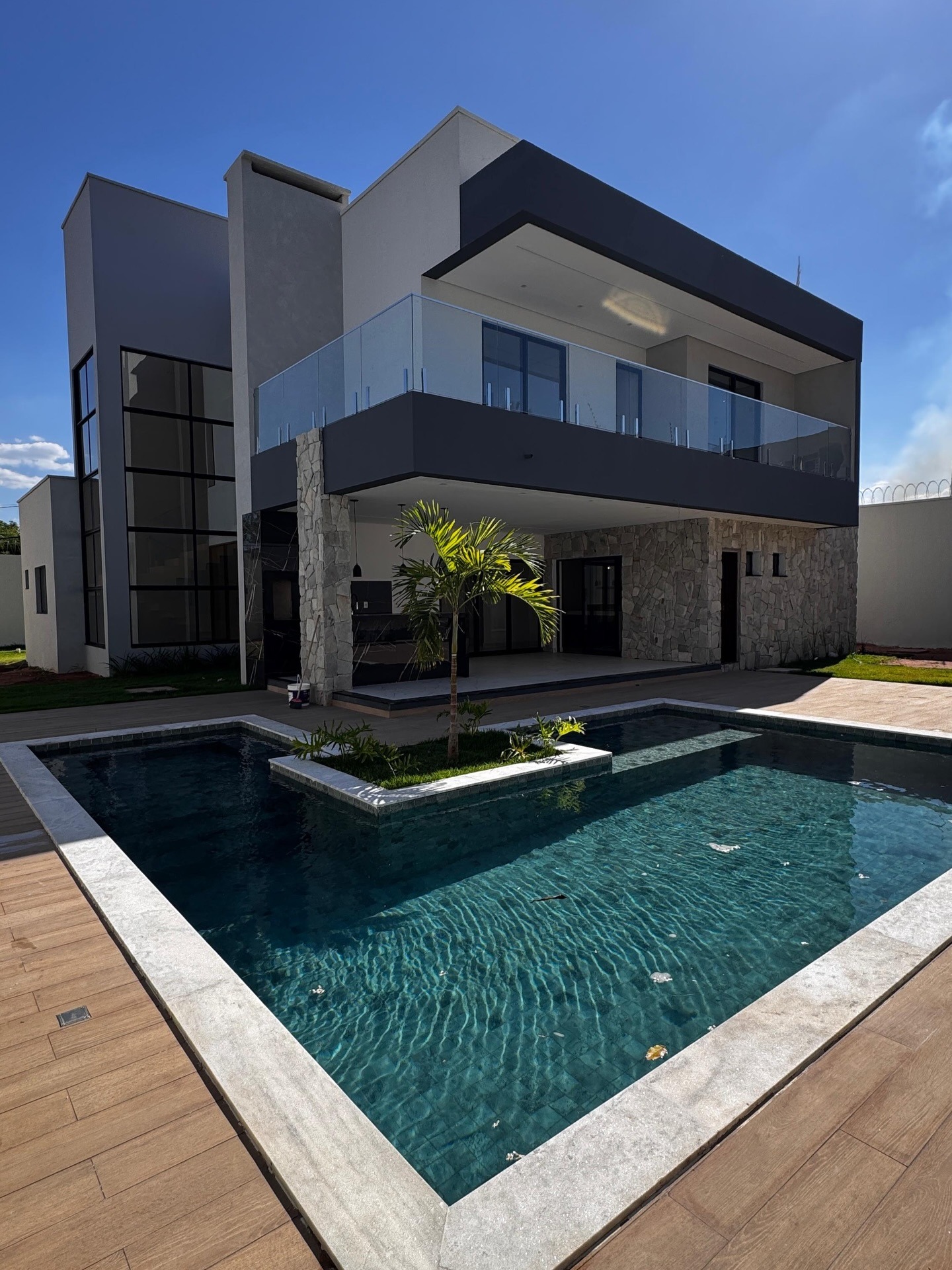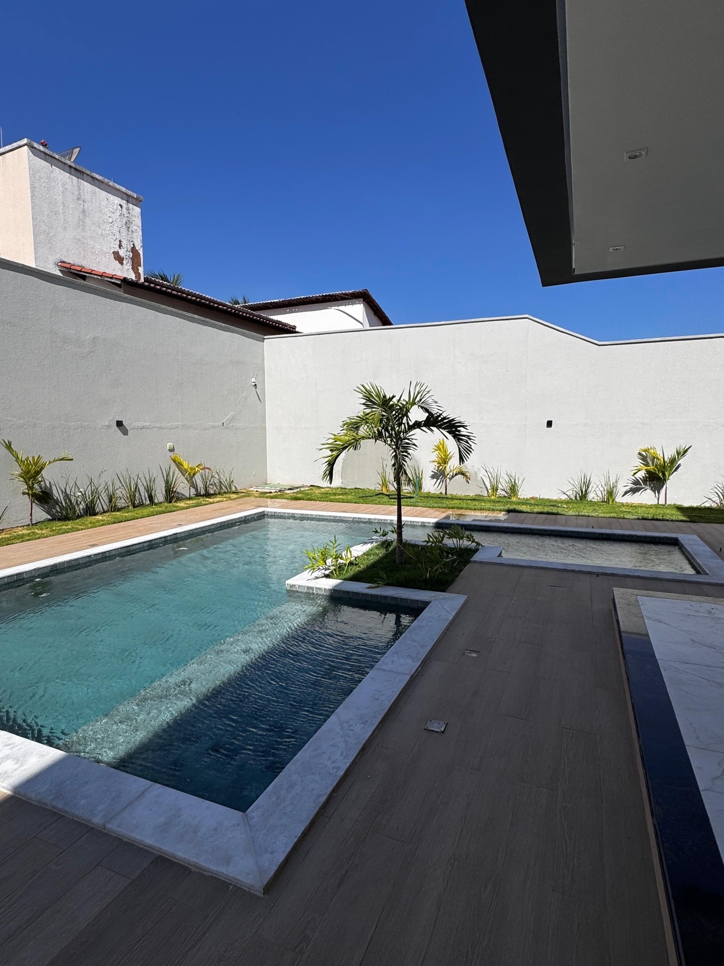 Piscina em alvenaria revestimento ATOL JADE e borda em granito